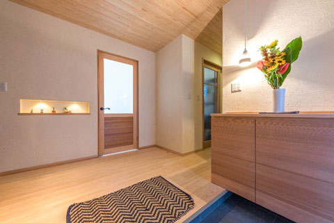何年経っても古びる事なく、かつ手を入れやすい素材を使った住空間。木材は入手しやすい杉・桧を中心に選定。既製品の合板フロアや塩ビの建材は、流行り廃りがある上に時が経つ程に安っぽくなります。時代の流れに左右されない住空間は長く住む家には必要不可欠です。